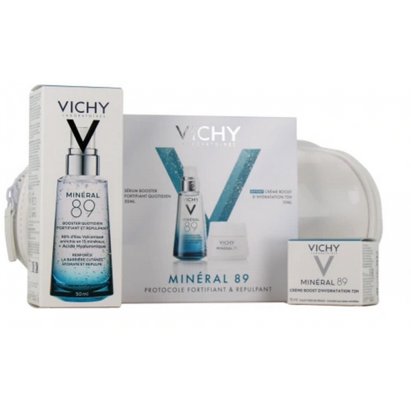 Ce coffret Vichy comprend le Sérum Minéral 89 Booster Quotidien Fortifiant et Repulpant et la Crème Boost d'Hydratation 72h Minéral 89 ! En savoir +