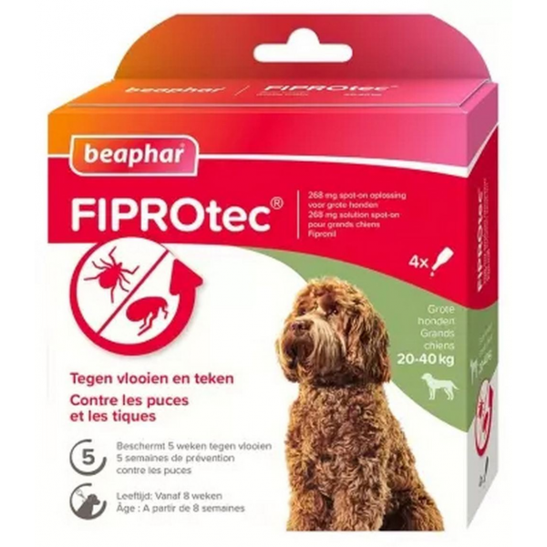Beaphar Fiprotec Solution Spot-On Grands Chiens 20 à 40 kg 4 Pipettes