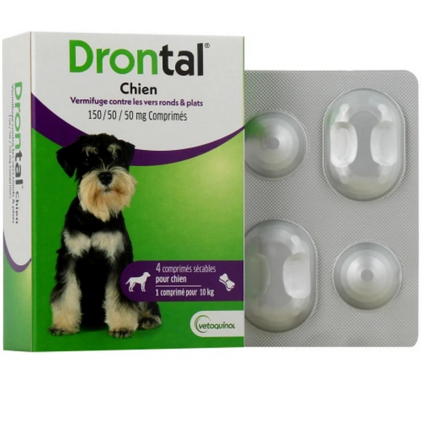 Drontal Arôme Boeur Comprimés Sécables Pour Chien x 2 va être très efficace pour libérer votre chien des vers ronds et vers plats.