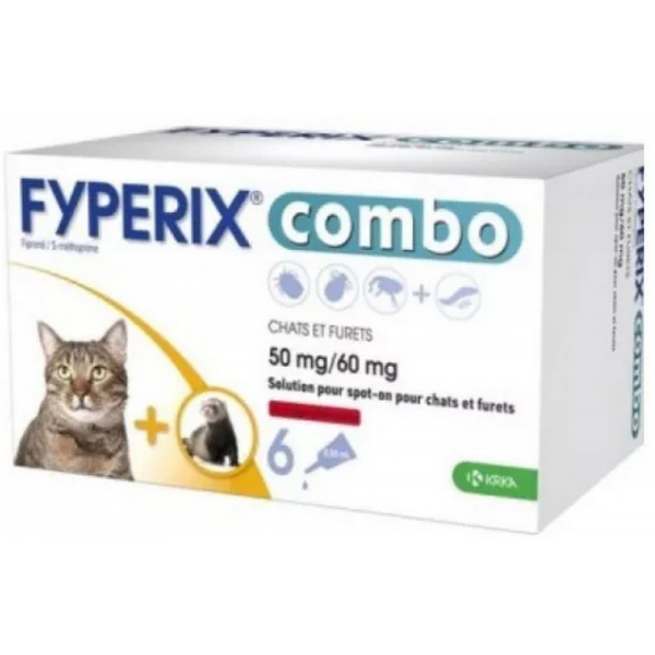 Fyperix combo est un traitement antiparasitaire sous forme de pipette à base de fipronil qui permet d’éliminer les puces, les tiques et les poux broyeurs chez les chats.