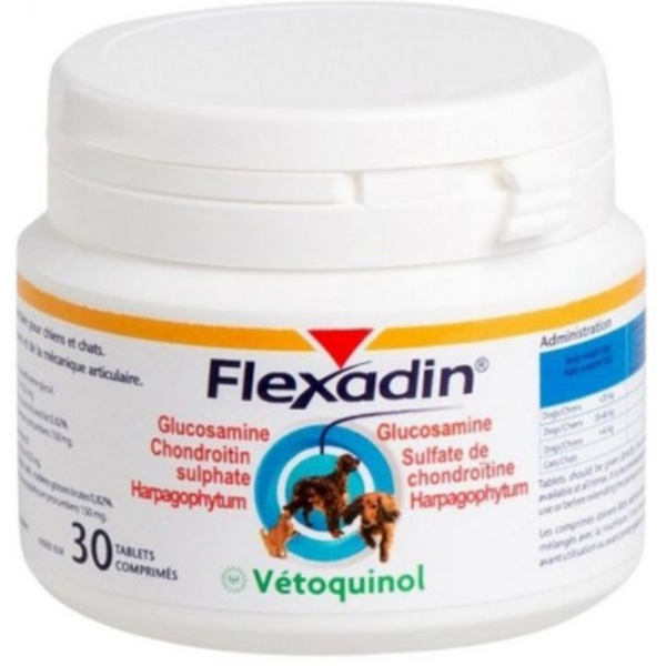 Vetoquinol Flexadin Comprimés pour chat et chien est un compléments alimentaires qui aide à soulager les douleurs d'articulations liées à l'arthrose de votre animal. Il participe à préserver ses capacités locomotrices et son confort de vie.