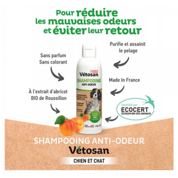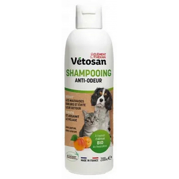 Clément Thékan Vétosan Shampoing Anti-Odeurs Chiens et Chats Bio 200 ml