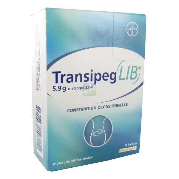 La constipation occasionnelle peut être liée à une modification récente du mode de vie (par exemple voyage). TRANSIPEGLIB 5,9 g, poudre pour solution buvable en sachet peut être une aide en traitement court (une semaine sans avis médical). Vous devez consulter votre médecin pour toute consultation récente qui n'est pas due à un changement du mode de vie ou pour toute constipation accompagnée de douleurs, de fièvre ou de gonflement du ventre.