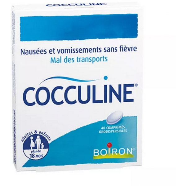 Cocculine est un médicament homéopathique indiqué en cas de nausées et vomissements sans fièvre ou de mal des transports. Non soumis à une ordonnance du médecin, ce produit homéopathique des laboratoires Boiron est prisé en pharmacie car il convient aux enfants (bébé de plus de 18 mois) et à l'adulte.
