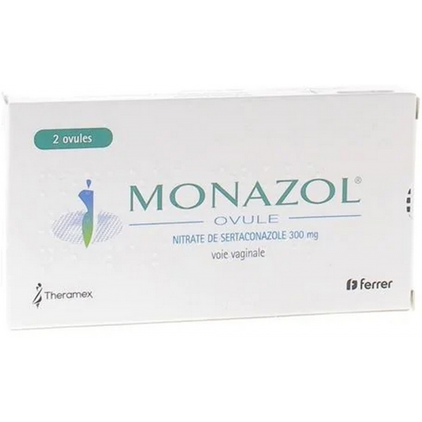 Monazol a un effet local. Il contient un antifongique agissant sur certains champignons comme Candida albicans, le champignon le plus souvent présent en cas de mycoses vaginales. Les indications des produits Monazol (crème et ovule) sont les candidoses et dermatophyties. Cet antifongique est le sertaconazole : ce composé a un spectre d'action qui agit sur les levures du genre candida et Malassezia furfur, sur des dermatophytes et certaines bactéries dites "Gram +" comme les staphylocoques et les streptocoques. Le sertaconazole a un effet anti-mycose observé in vivo, et un effet antibiotique sur les bactéries Gram+. Ainsi, le Monazol est un médicament indiqué dans le traitement de certaines maladies cutanées et des muqueuses causées par des champignons : candidoses, dermatophyties, intertrigos, perlèches. Monazol est un médicament disponible sous différentes formes : en crème par tube de 15 ou 30 grammes, et en ovule, en boite de 1 ovule ou de 2 ovules. La crème Monazol contient 2 grammes de nitrate de sertaconazole pour 100 grammes, et un ovule contient 0,300 g de nitrate de sertaconazole.