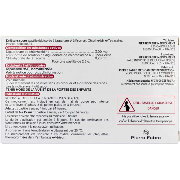 Drill Tétracaïne Pastilles Sans Sucre x 24