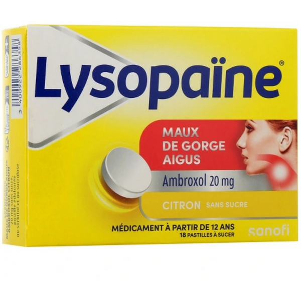 La posologie du produit Lysopaïne Maux de gorge Ambroxol Citron x 18 pastille édulcorée au sorbitol et au sucralose est de 6 pastilles par jour. Chez l'adulte et l'enfant de plus de 12 ans, une pastille doit être sucée pour soulager la douleur sans excéder 6 pastilles par jour. Si vous vous apercevez d'avoir oublié une dose simple, ne prendez pas de dose double pour compenser mais patientez jusqu'à la prochaine administration. Il est également déconseillé d'utiliser Ambroxol plus de 3 jours sans l'avis médical de votre médecin ou pharmacien. En cas de surdosage, nous vous conseillons de consulter un professionnel de santé, médecin ou pharmacien afin d'obtenir un conseil.