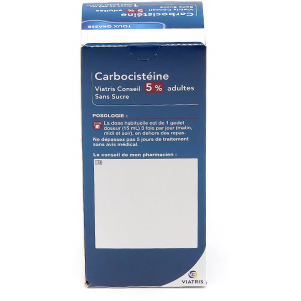 Ce médicament contient de la carbocistéine. D'autres médicaments en contiennent… ne les associez pas, afin de ne pas dépasser les doses maximales conseillées (voir 3. COMMENT PRENDRE CARBOCISTEINE MYLAN 5 % ADULTES SANS SUCRE, solution buvable édulcorée au maltitol liquide et au sorbitol ?).