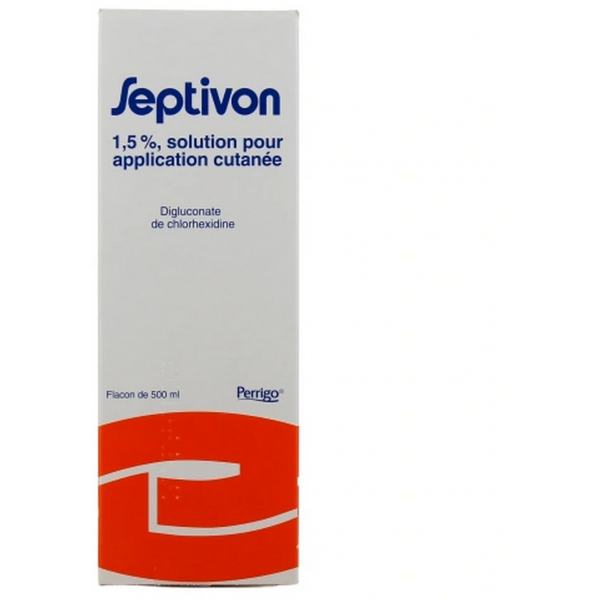 Septivon est un médicament, sous forme de solution, indiqué le nettoyage et le traitement local d'appoint des affections de la peau, infectées ou risquant de s'infecter. La solution Septivon est notamment composée de Digluconate de Chlorhexidine. Ce produit agit au niveau de la peau en étant associé à un agent moussant.