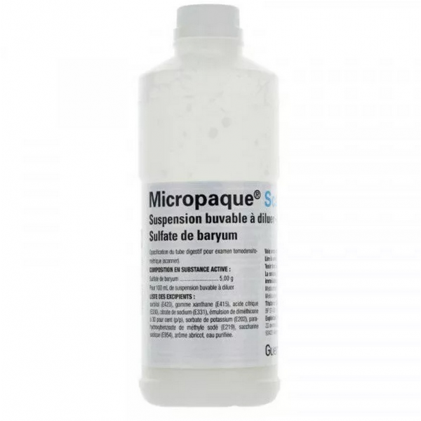 - Micropaque Solution buvable ou rectale, en flacon de 150 ml ou 500 ml.