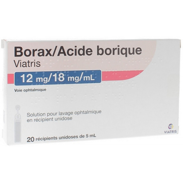 Borax/Acide Borique est un médicament utilisé pour les lavages oculaires en cas d'irritations conjonctivales.